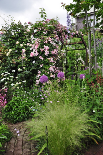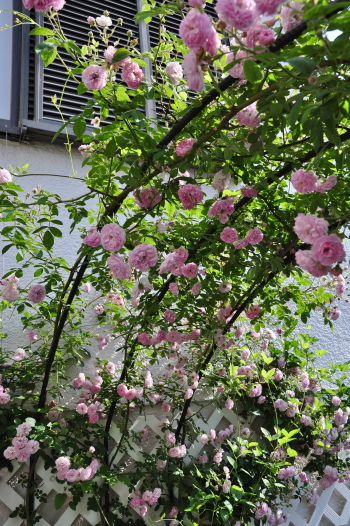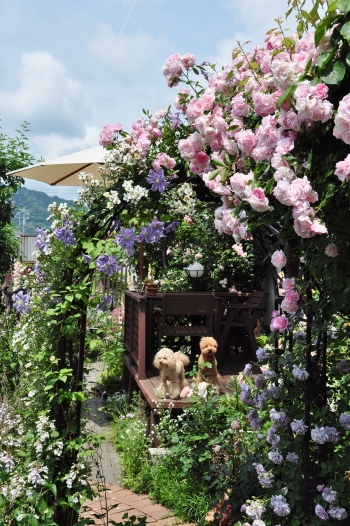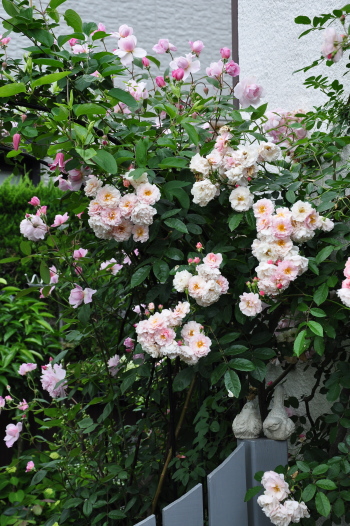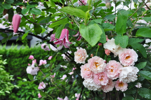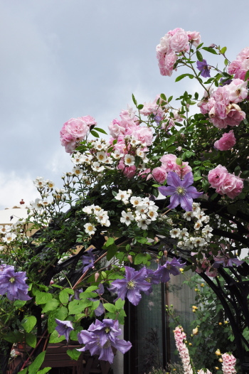 クレマチスのアーチの予定がバラのローラダボーを植えたので欲張りなものになりました