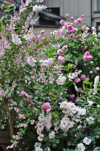 更紗ウツギが咲き始めて可愛らしい組み合わせになりました