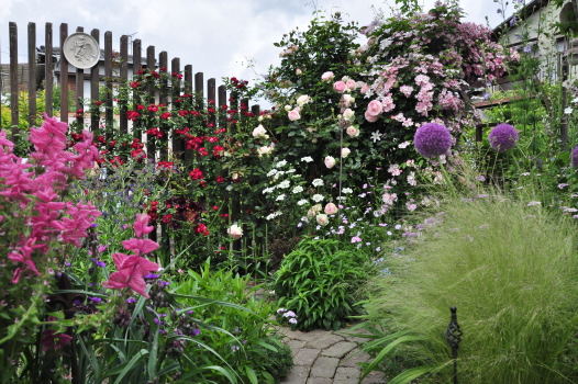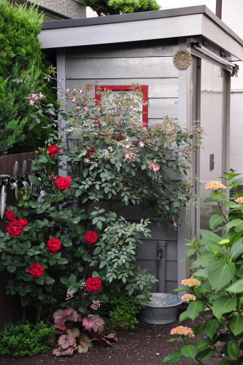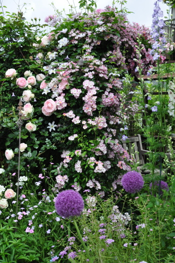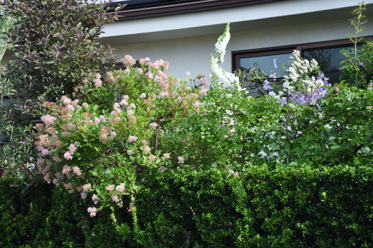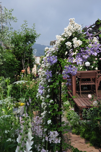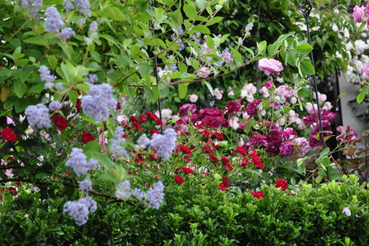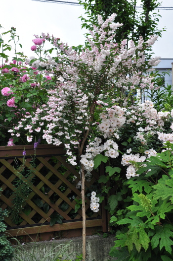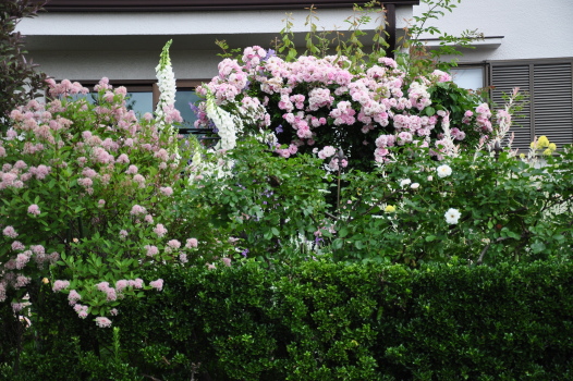 クレマチス プリンスチャールズやバラ ホワイトスプレーが見えるようになりました