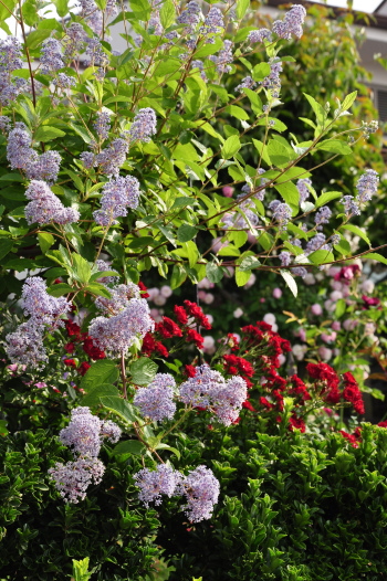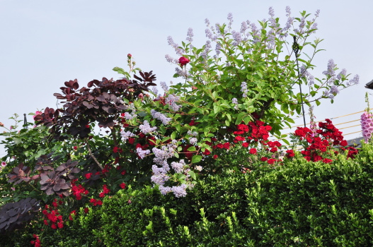 スモークツリー ロイヤルパープル、レッドキャスケード、セアノサス ベルサイユ
