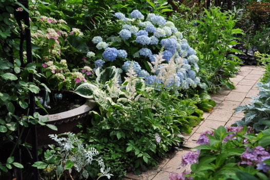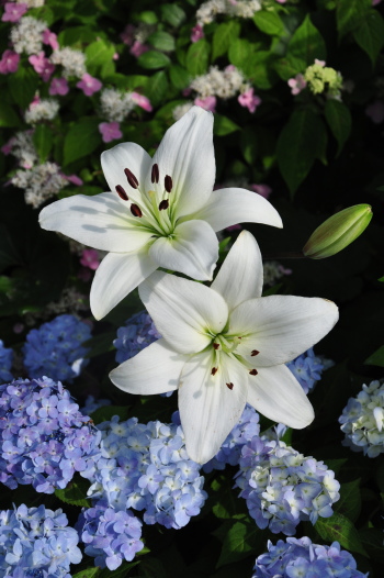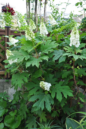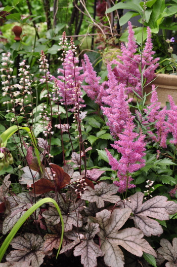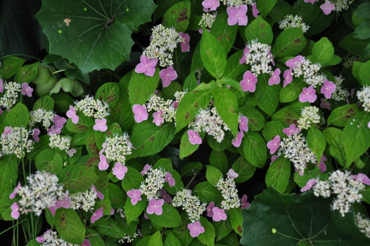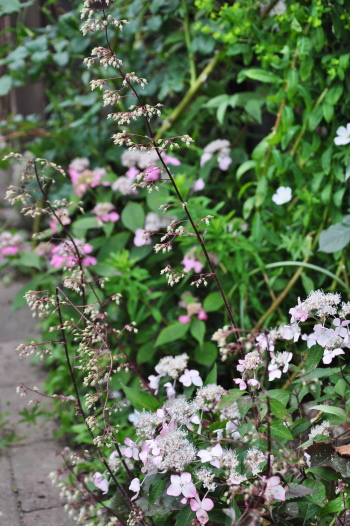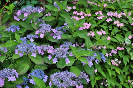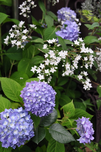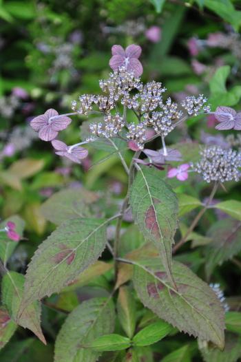 ヒューケラ & 山アジサイ 紅剣 & 山アジサイ 阿波紫