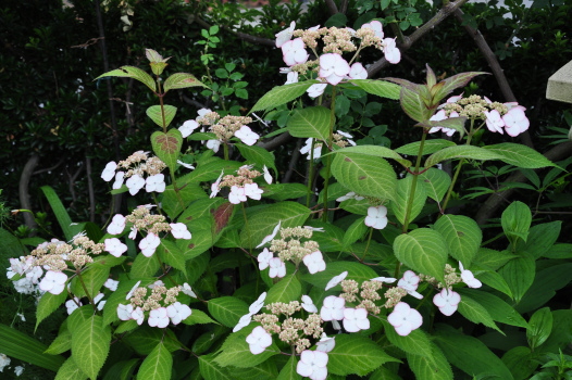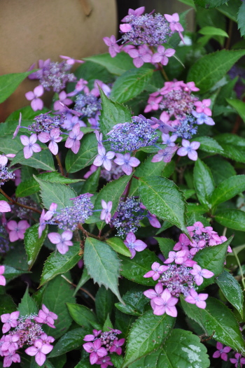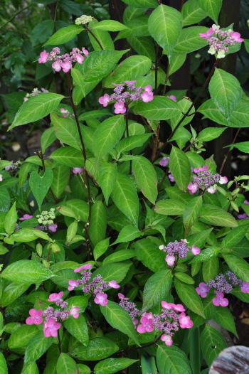 雨の中、山アジサイや葉物が美しく見え、ホッとします