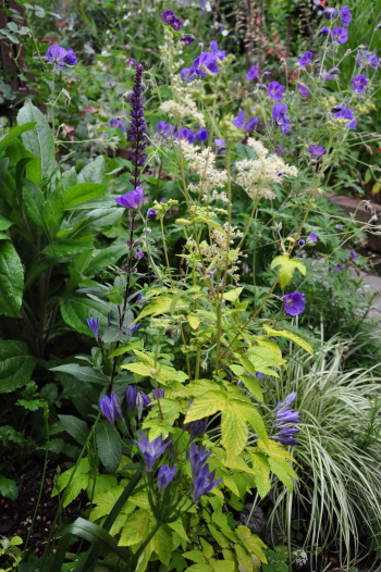 ゲラニューム ジョンソンズブルー & メドスイート 黄金葉(フェリペンデュラ ウルマリア オーレア)