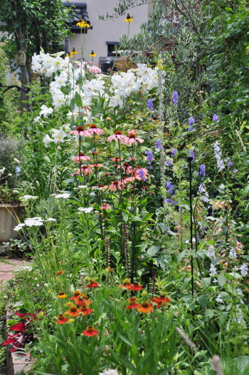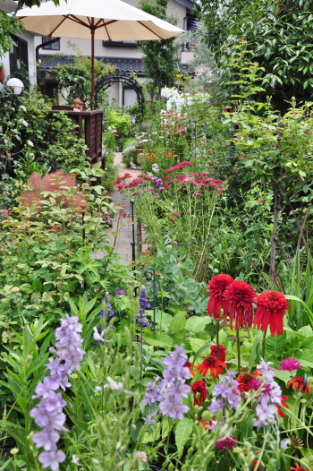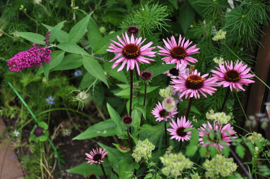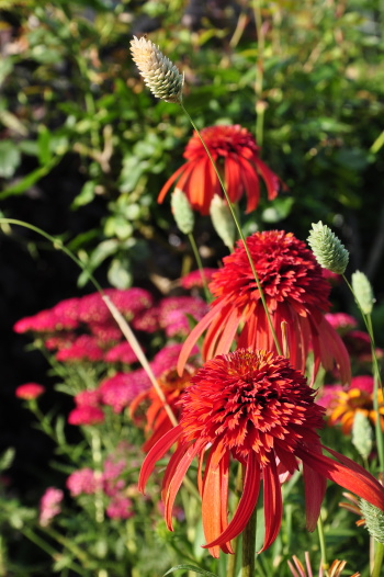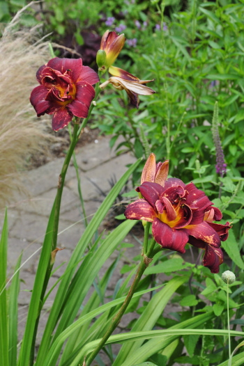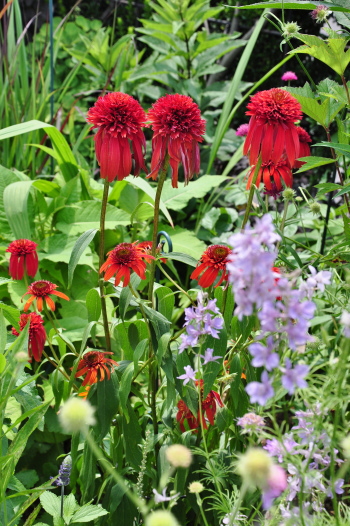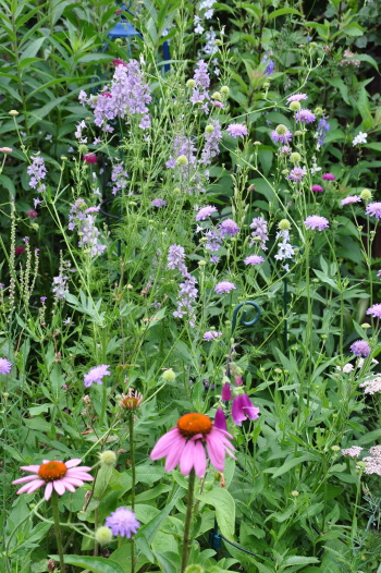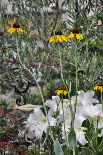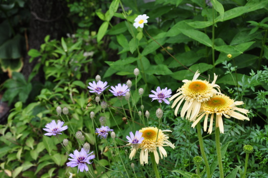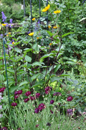 セントーレアブラックボールの花色とヘリオプシスサマーナイトの茎の色が良い感じ~なんて思いながら見ています