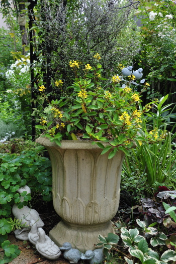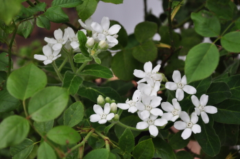 バックにミツバハマゴウ(ニンジンボク プルプレア)の葉色が見えるとシックな印象になります