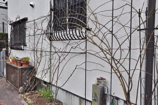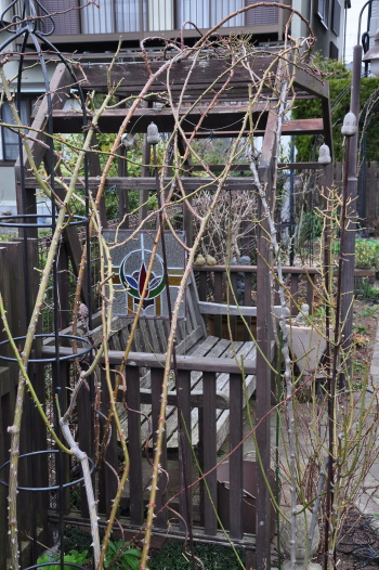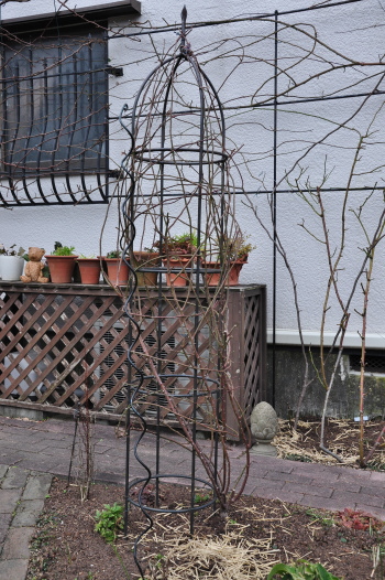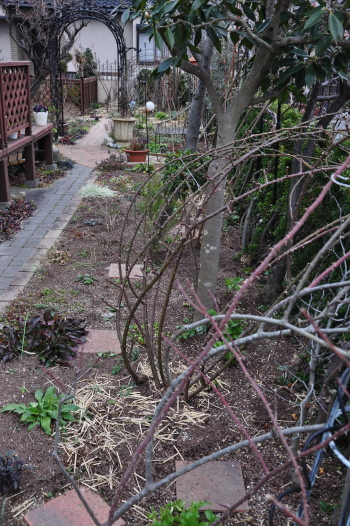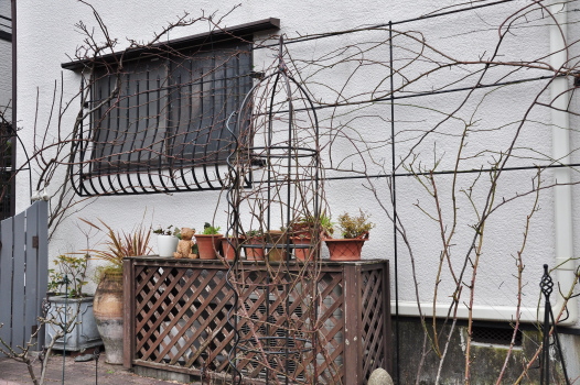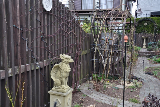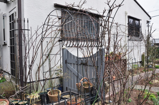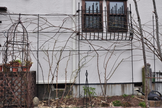 庭のようすとツルバラの誘引