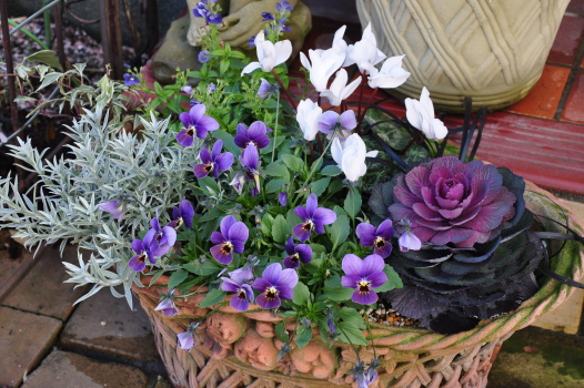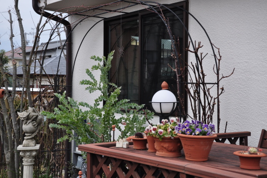 寂しい冬の庭を彩る鉢植え