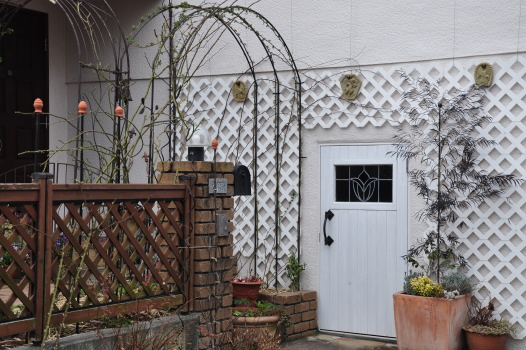 玄関の入り口のアーチはローラーダボーです