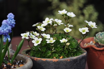 クモマグサ白花(夏越しが難しく1年草扱い) & ムスカリ アズレウム