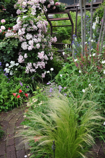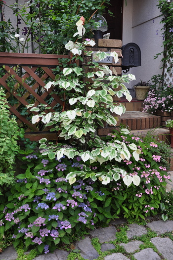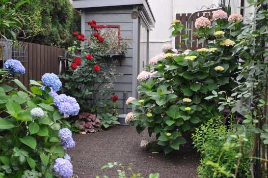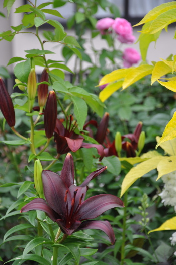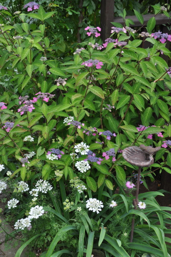 庭はバラからクレマチス、山アジサイ、ユリに主役が変わっていきます