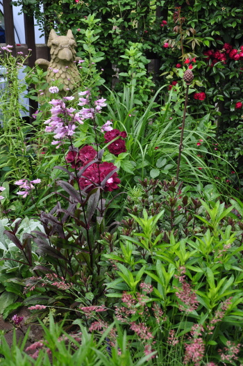ペンステモン ハスカーレッド & バラ ジプシーボーイ(今年、最後の花です)