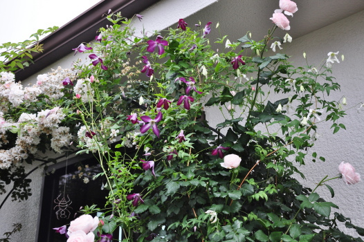 替わりにクレマチス ワーレンバーグやクーゲルビーホワイトが咲いてきました