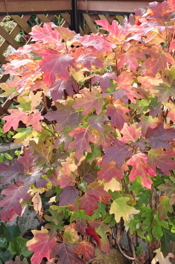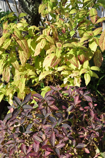 12月中過ぎになるとようやくアジサイたちが紅葉し始めます