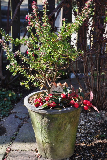 暖冬の時はツルバラの誘引は年明けが良いと聞きますが私の所は温暖でそのままでも芽が膨らんできます