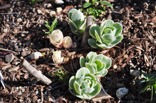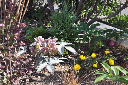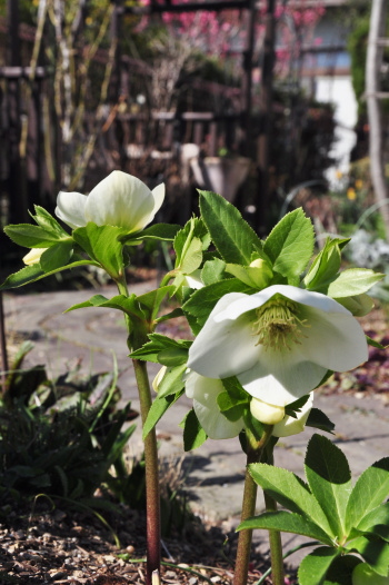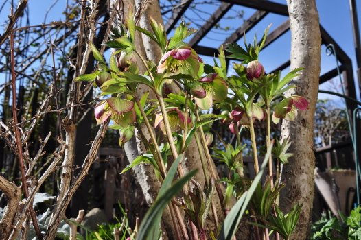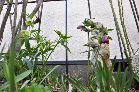 クリスマスローズの開花、球根類、ネコヤナギ、白梅も例年よりも遅い感じがします