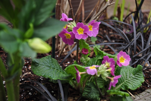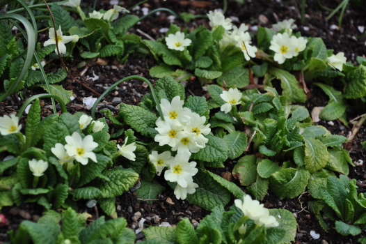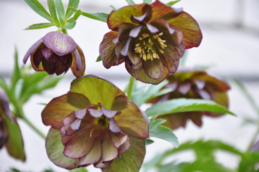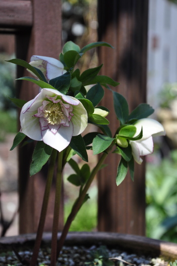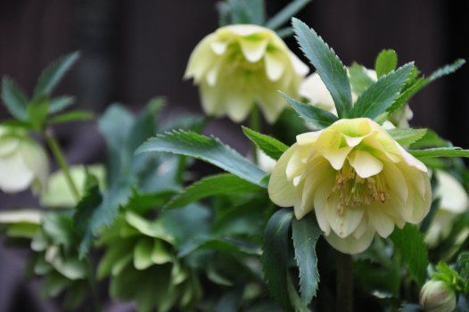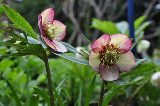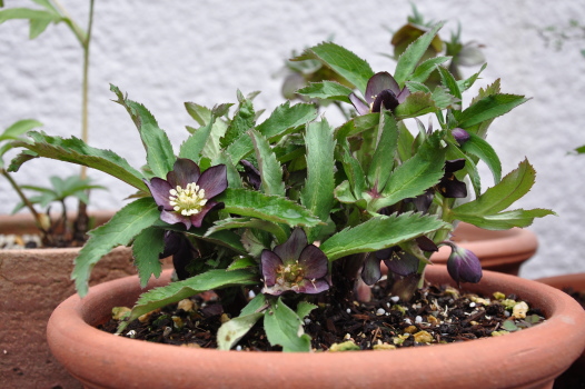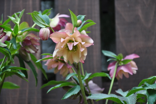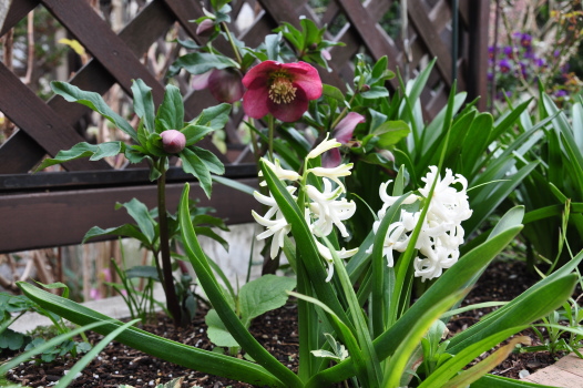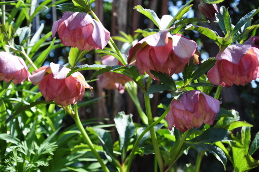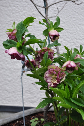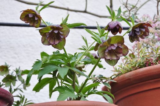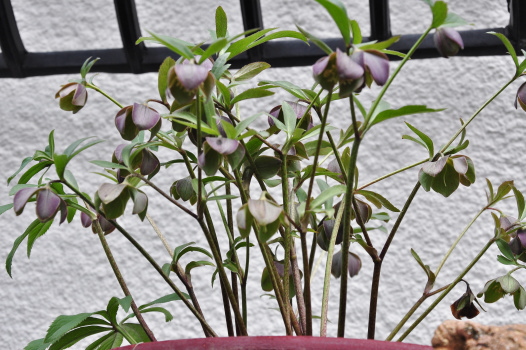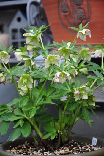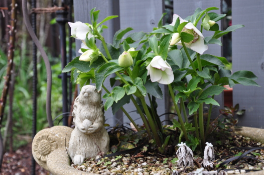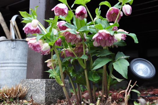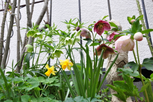 クリスマスローズは早咲きは種を作り始めましたが遅いものは今が見ごろで庭全体を見ると満開といった感じです