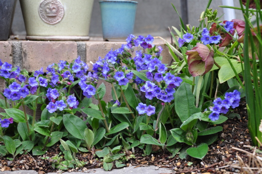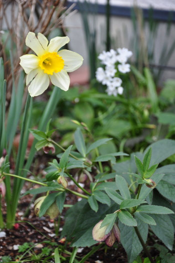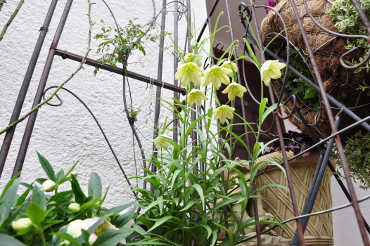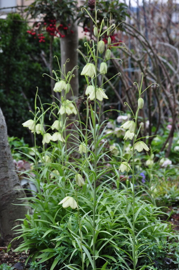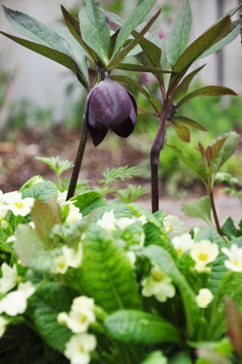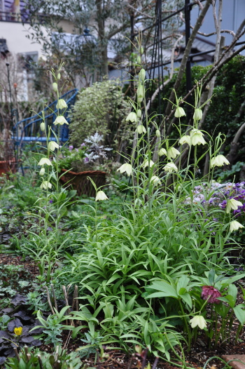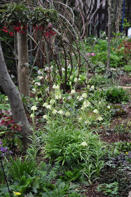 バイモユリとクリスマスローズ、そして、宿根草たちのきれいな芽吹きの葉、大好きな春の景色です