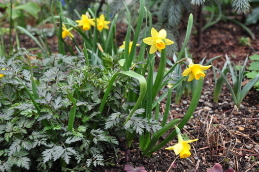 ミニスイセン ティタティタ と ワイルドチャービル レイヴァンズ ウィングの葉
