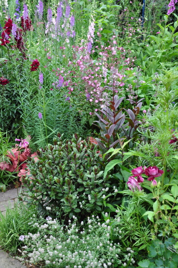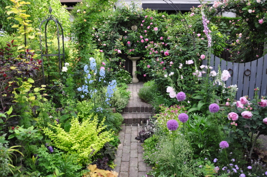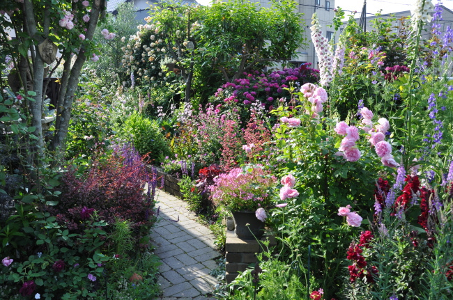 西の小道からキッチンガーデンを見たところです