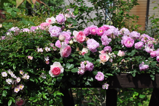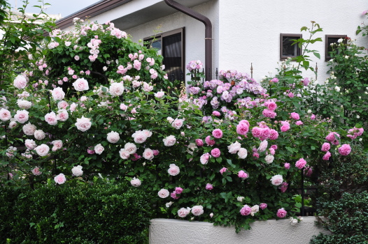 この庭にあるバラ全部が咲いています