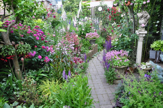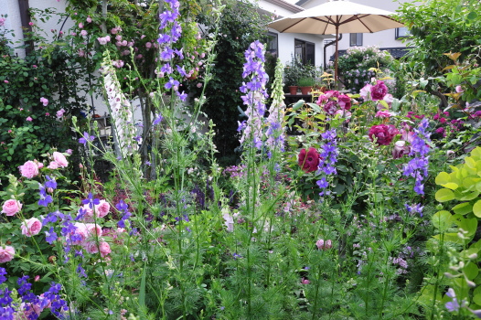 庭はバラのシーズンのピークを迎えています