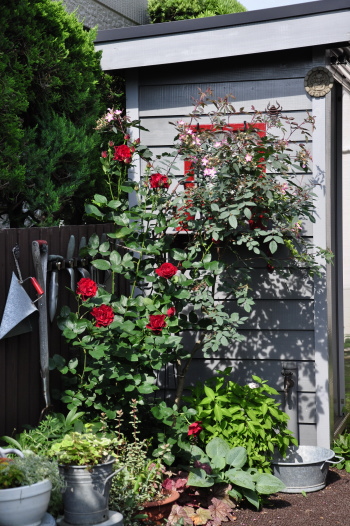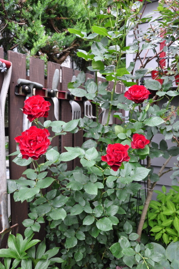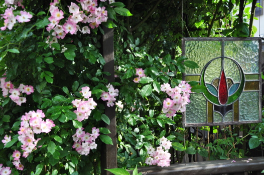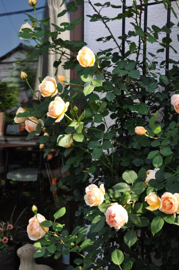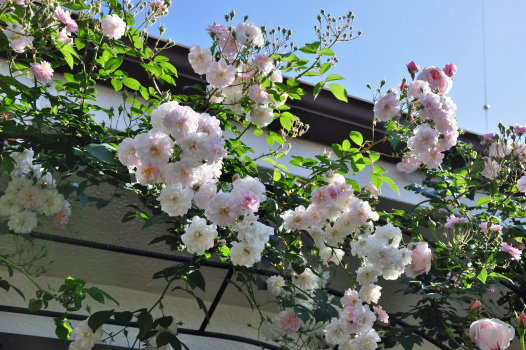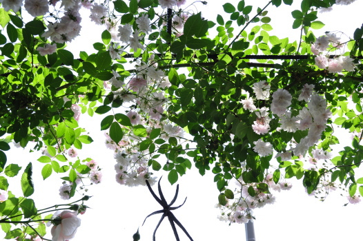 疲れて、反省しているときに見上げてバラに目が行くと暫し美しい姿に見とれます