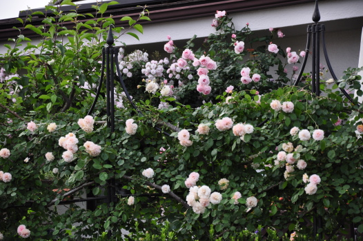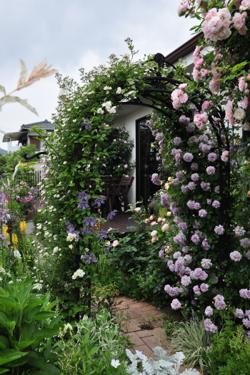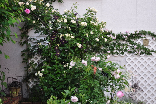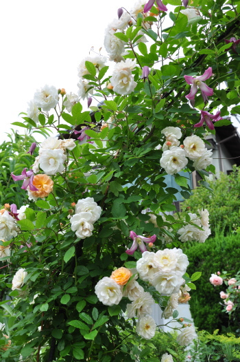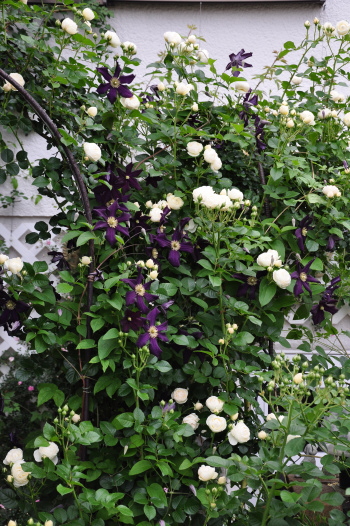 バラはホワイトスプレー クレマチスはプリンスチャールズ