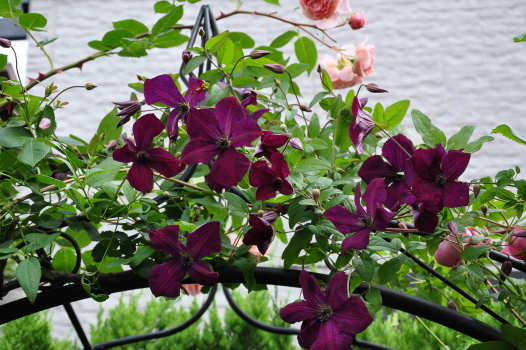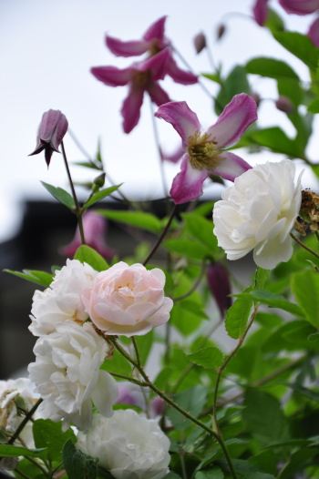 遅咲きのバラに加え、クレマチスが咲き始めてきました