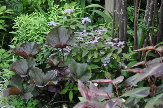 リグラリア ブリットマリークロフォード & ヤマアジサイ 伊予の薄墨 & ペルシカリア レッドドラゴン ‥
