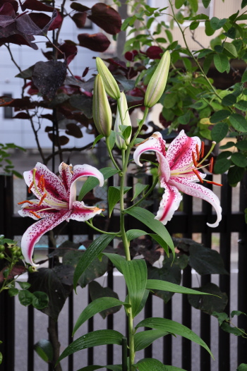 庭はハダニがバラだけではなく宿根草や球根植物の葉にまで被害が広がっています