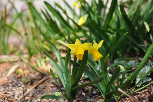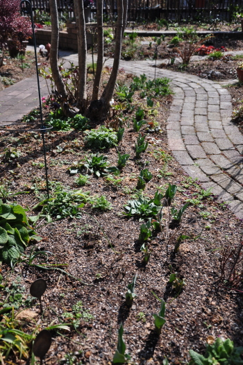 何もないところだったけれどチューリップの葉が目立つようになりました