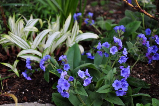 タガネソウ 白露錦 & プルモナリア ブルーエンサイン