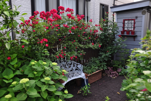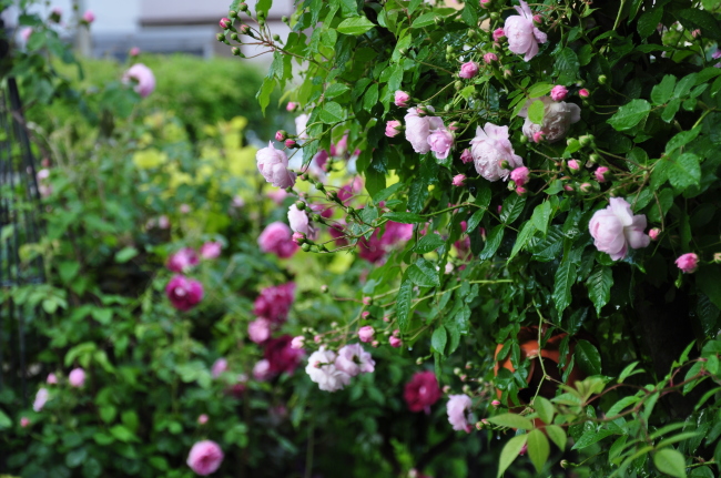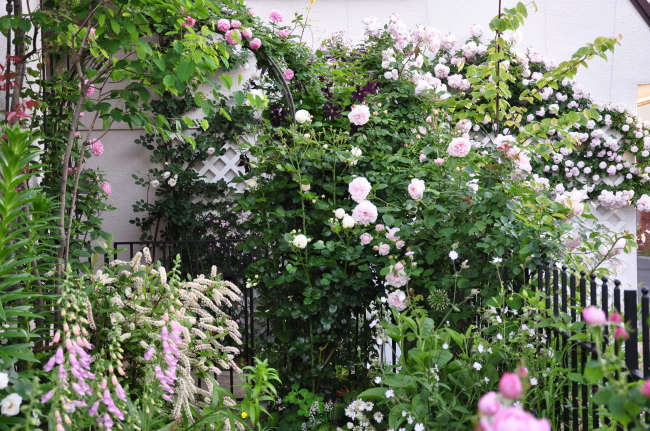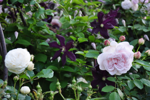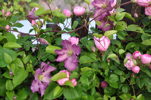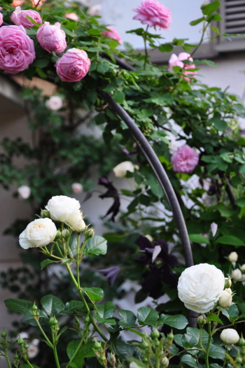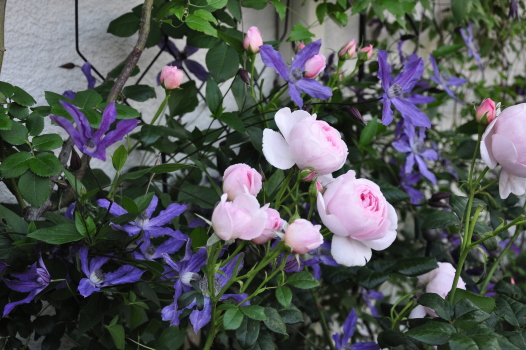 クレマチスはプリンスチャールズ、メアリーローズ(フローレ プレノ)