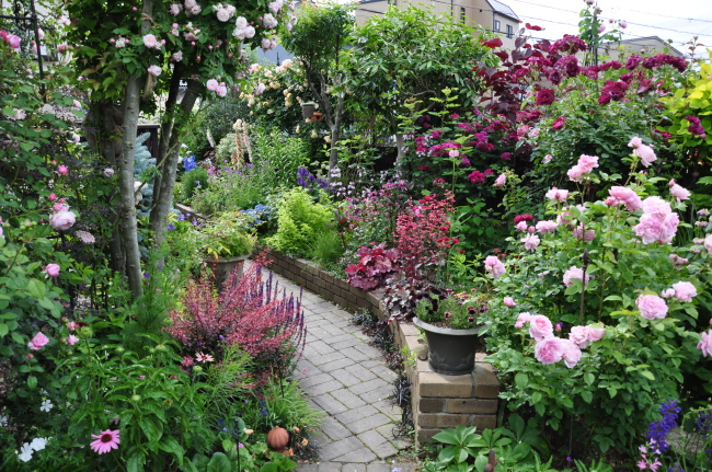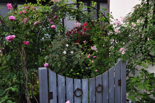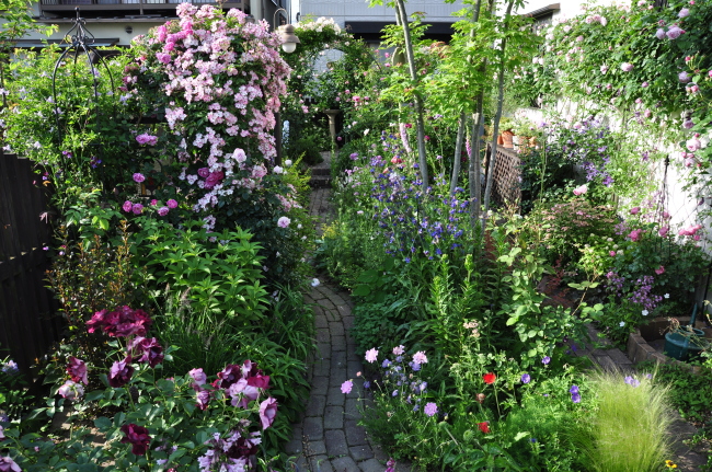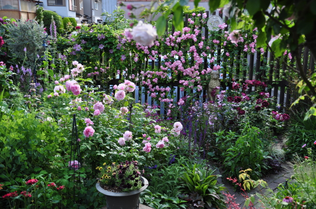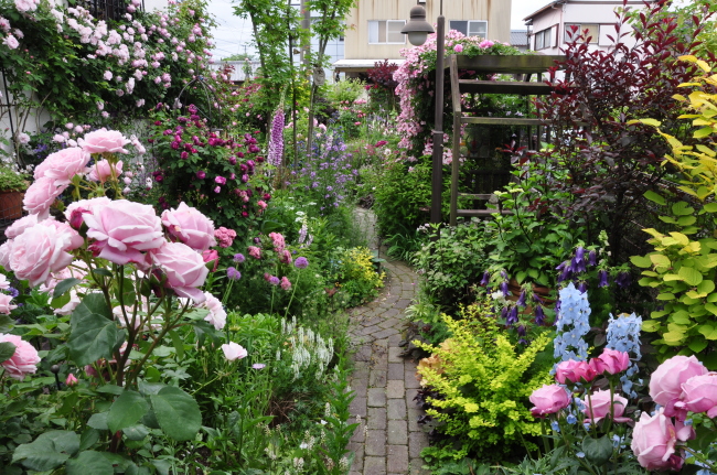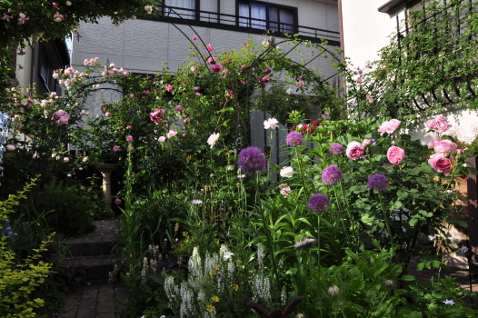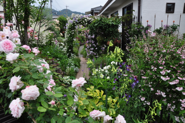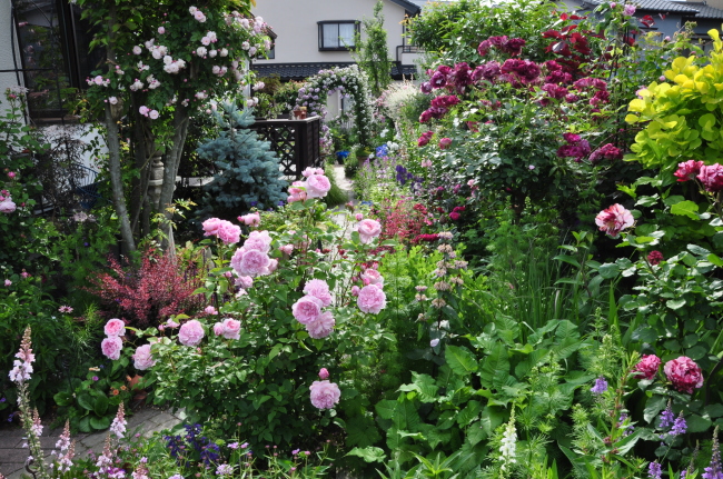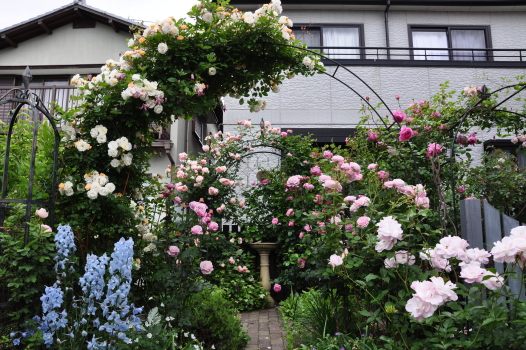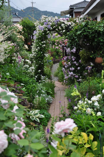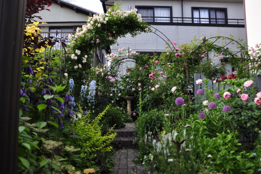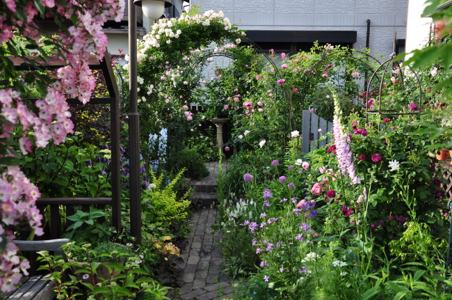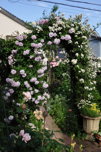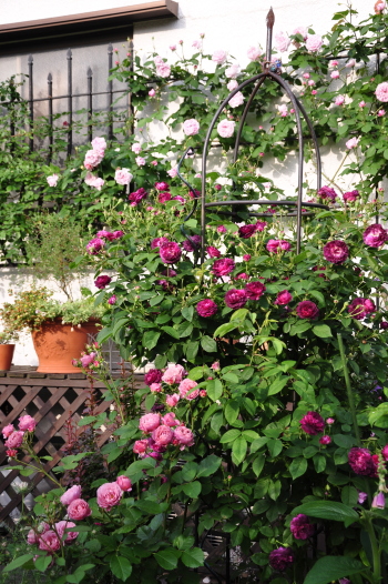 手前のアーチはギスレーヌドゥフェリゴンド と クレマチス 踊場