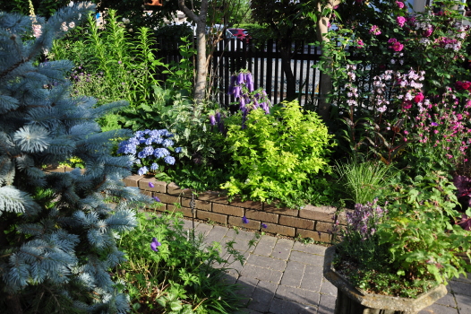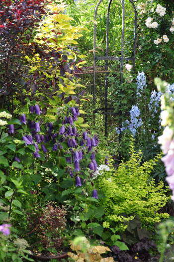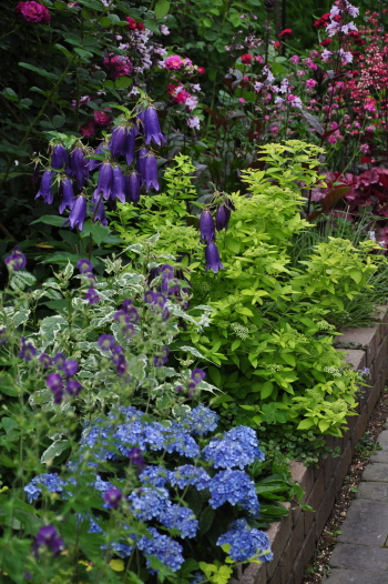 ホタルブクロ サラストロ、 山アジサイ 津江の小手まり、 シモツケ ホワイトゴールド