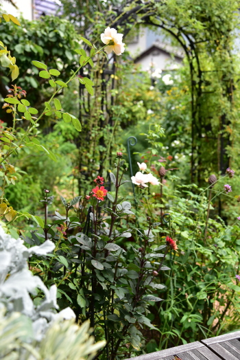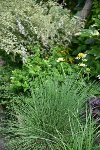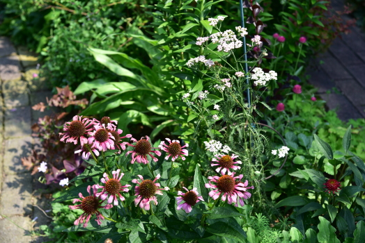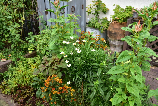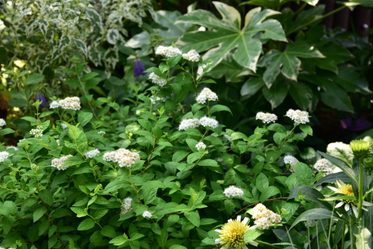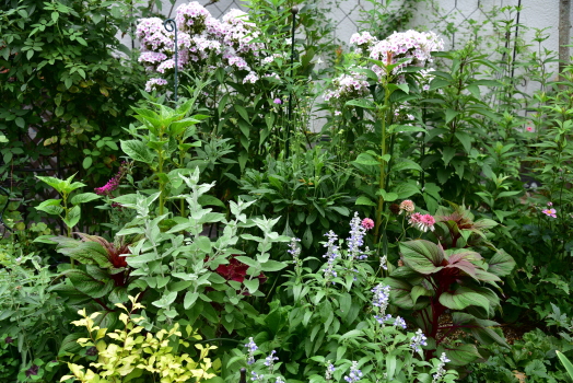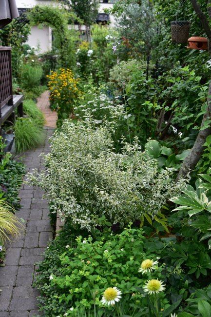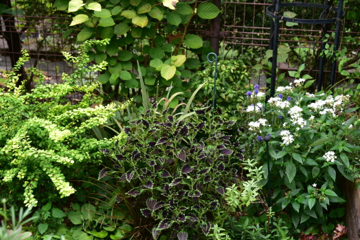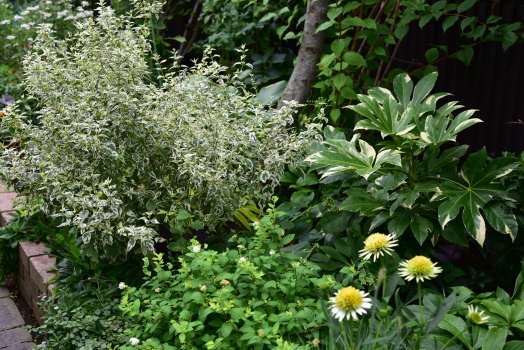 斑入りカリガネソウ と ヤツデ バリエガータ と エキナセア レモンスター