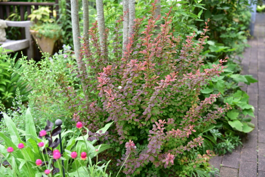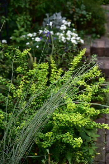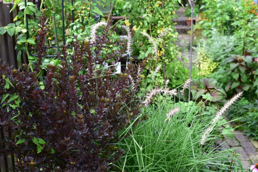 テマリシモツケ リトルデビル と ペニセタム カーリーローズ