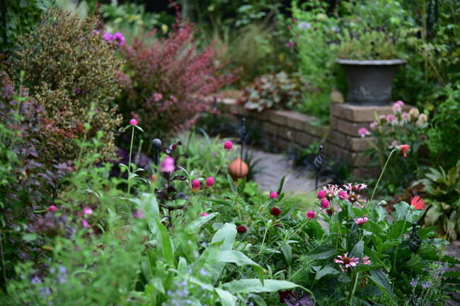 こぼれ種からのセロシア セルウェイ テラコッタ や ヘレニウム ルビーチャーム