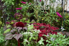 コリウス ビンテージベルベット、手前はケイトウドラキュラ