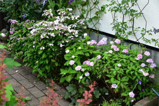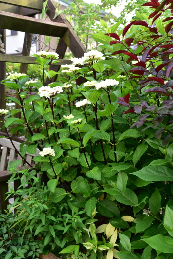 ヤマアジサイ、紅く染まってきたものはクレナイ