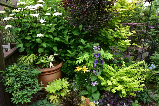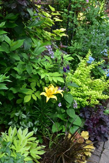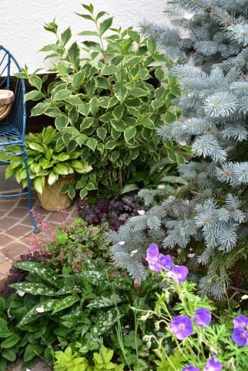 少し前まではバーガンディアイスバーグが咲き、赤い色が目立つコーナーでした