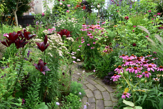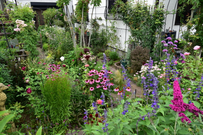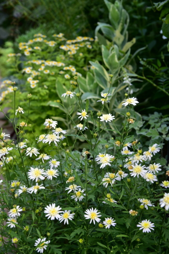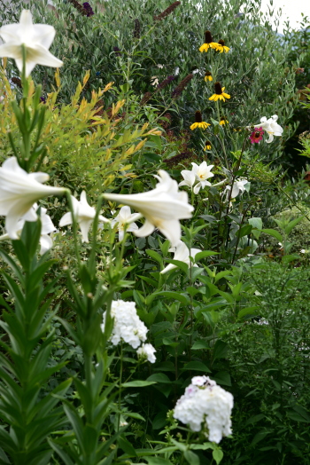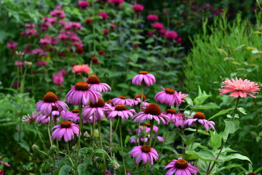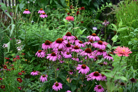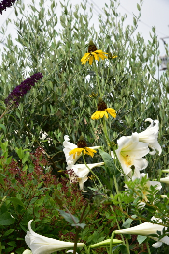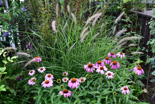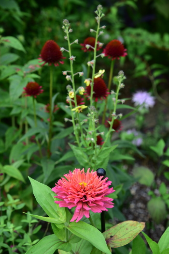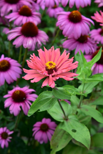 ジニアの後ろに見えるのは エキナセア アンジェラ