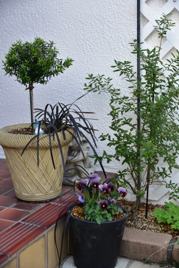 バラはブッシュを残し、誘引が終わりすっきりとした姿になりました