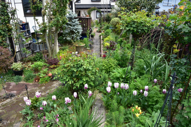 芽吹き始めの葉は好い感じなんですが花が咲くころは葉が倒れて場所をとる