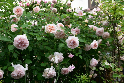 バラは遅咲き種もほんの少しですが咲き始めて、すべてのバラが咲いています