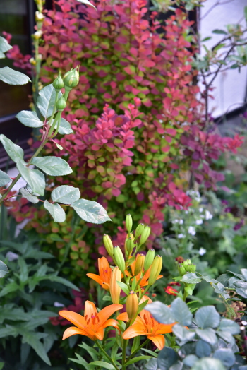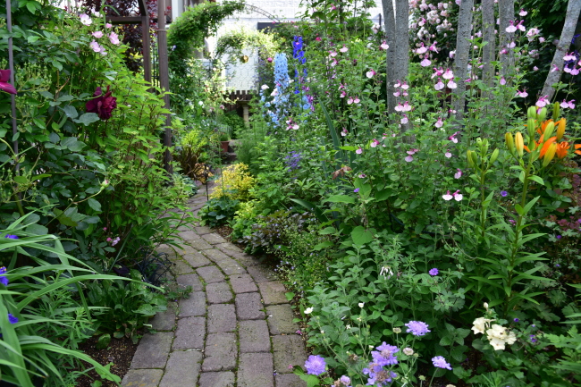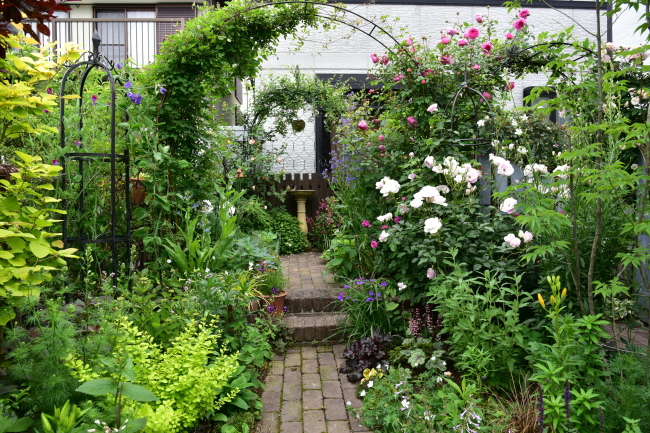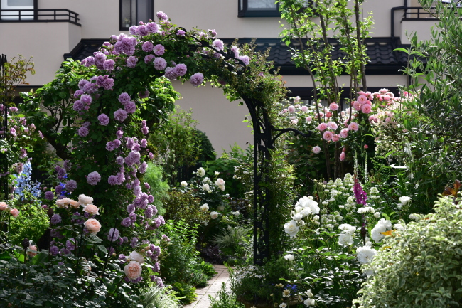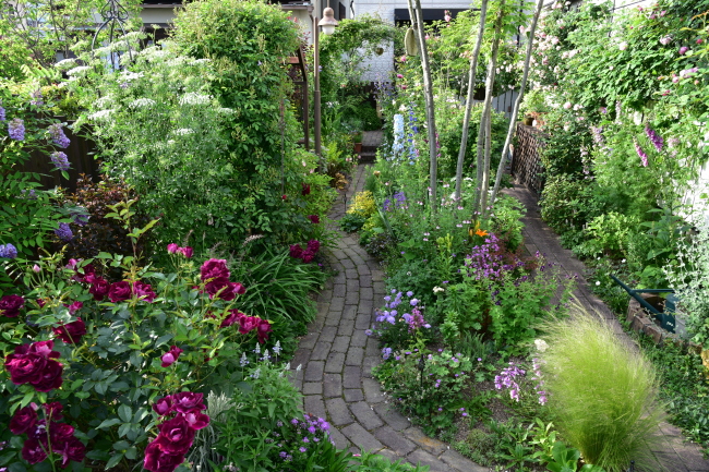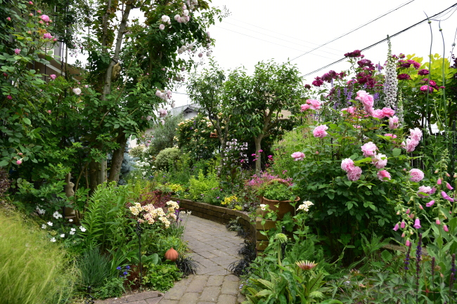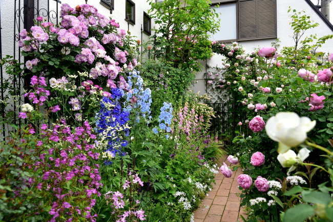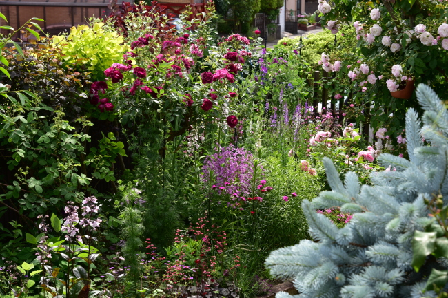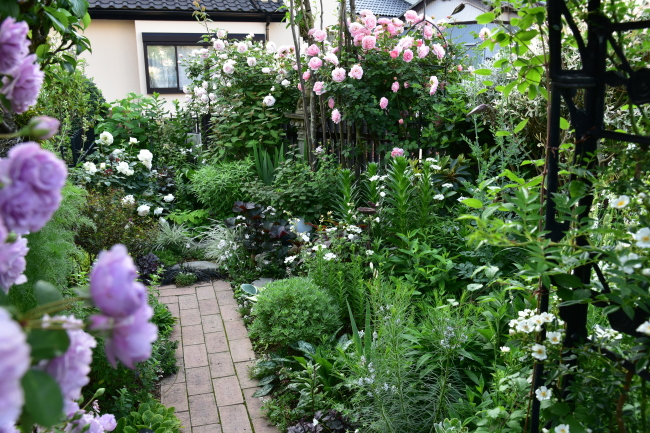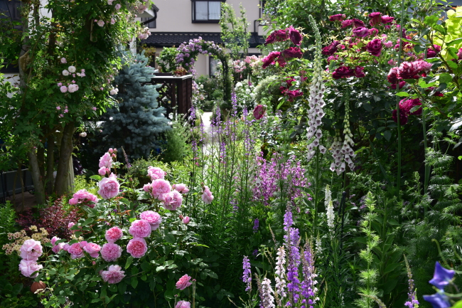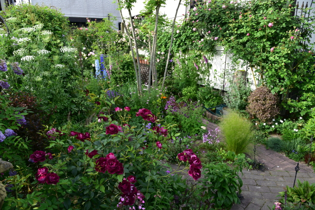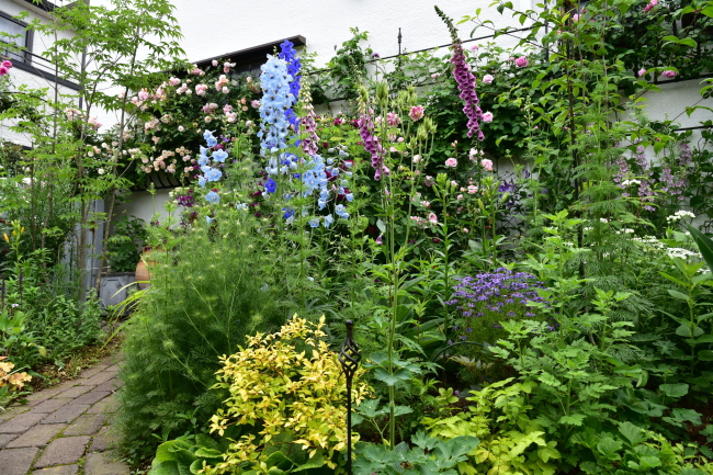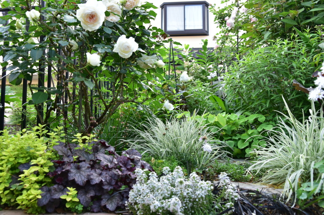 遅いと感じていた宿根草も咲いてきて、バラとのコラボもいい感じです