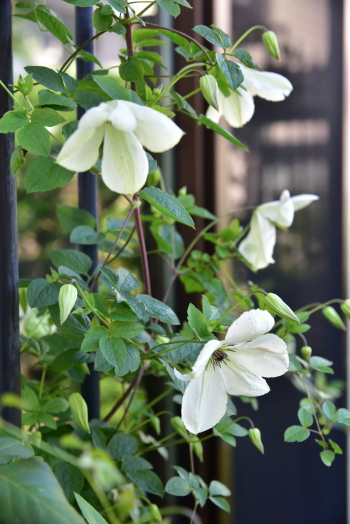 キッチンガーデンに入るアーチはクレマチス踊場の蕾が目立ってきました