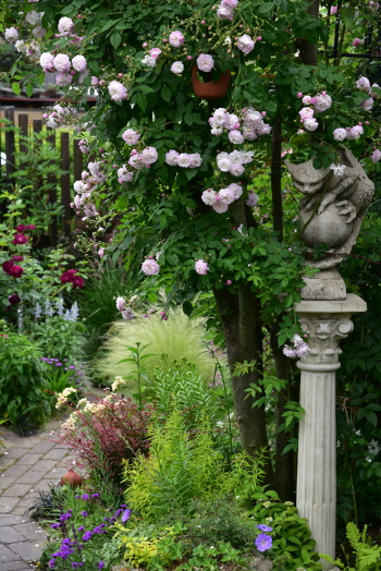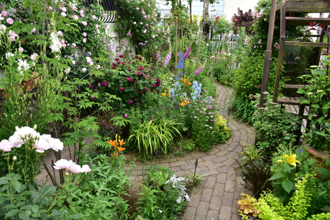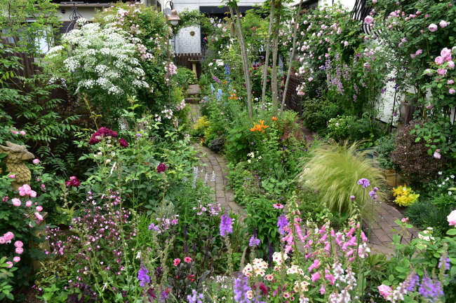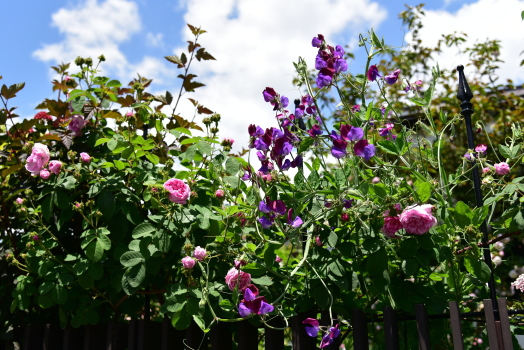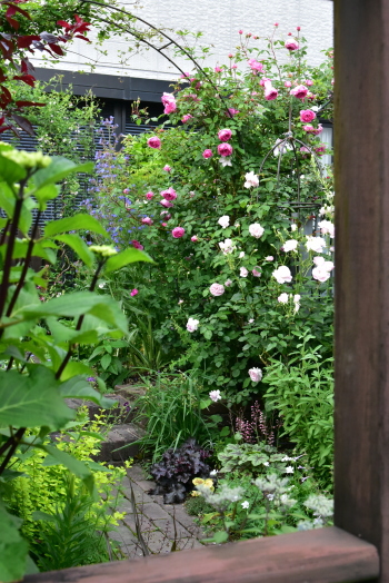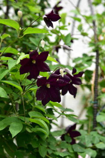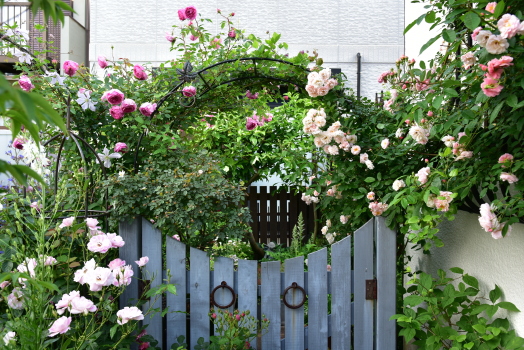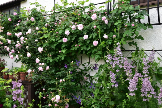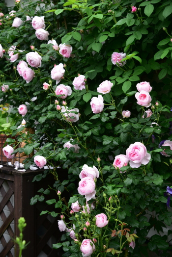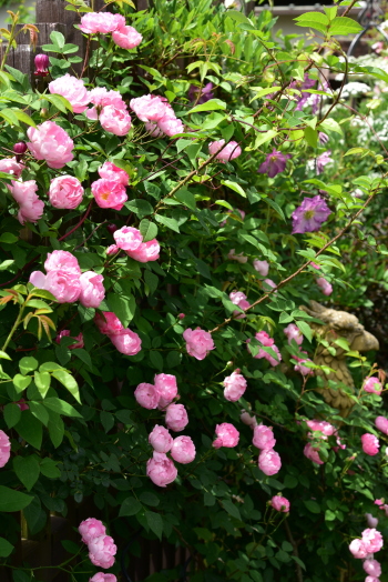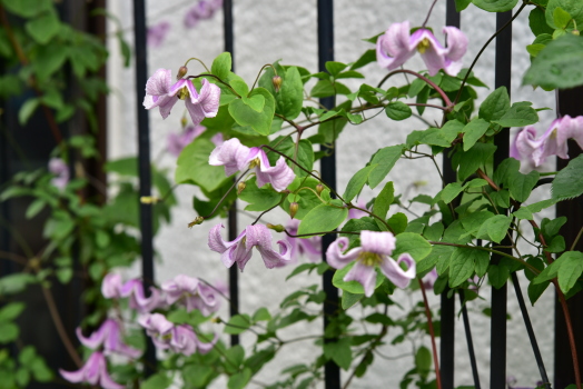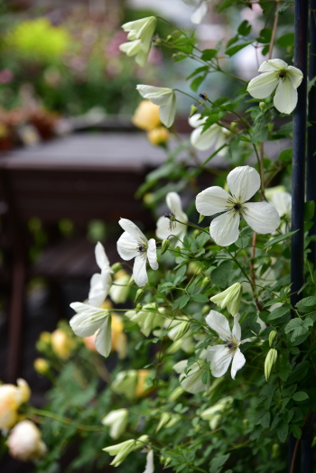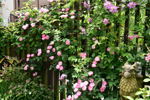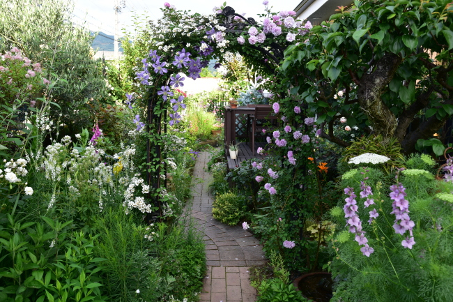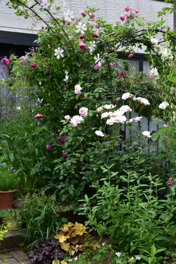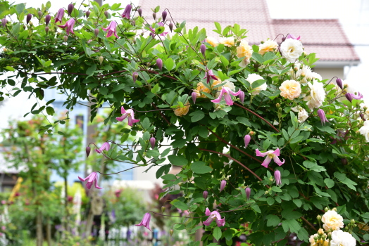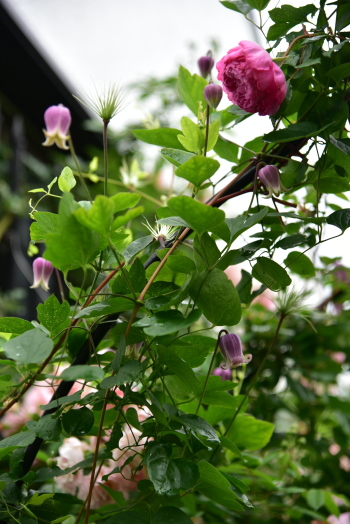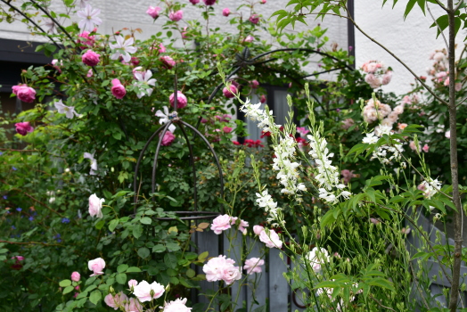 東の小道に入るゲートはバラからクレマチスに変わってきました
