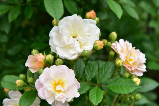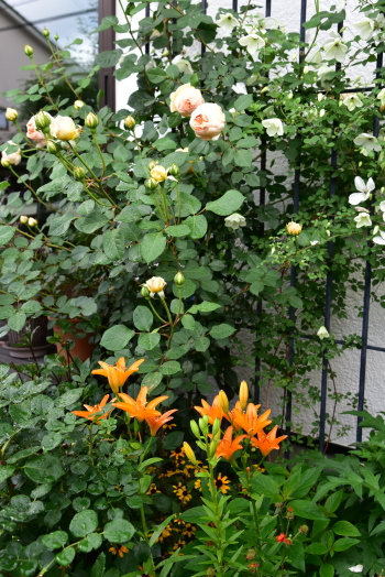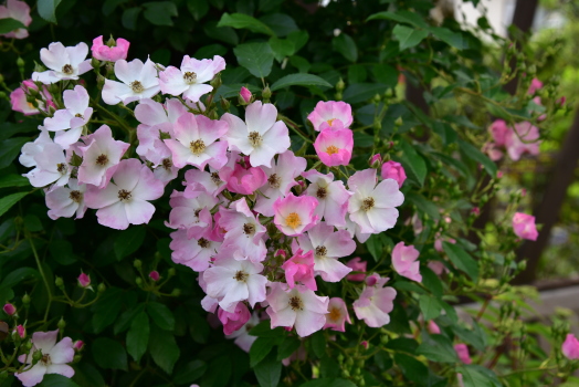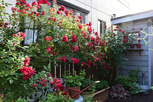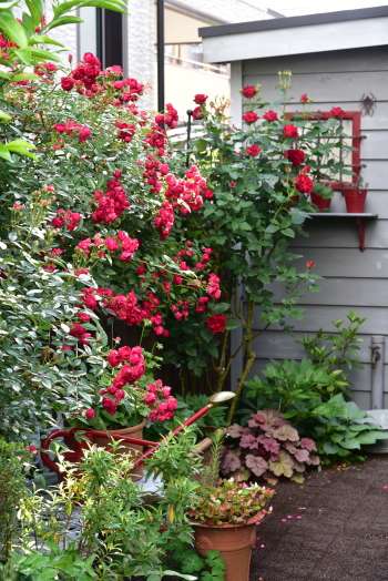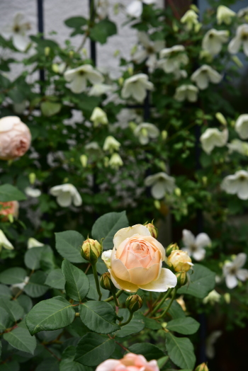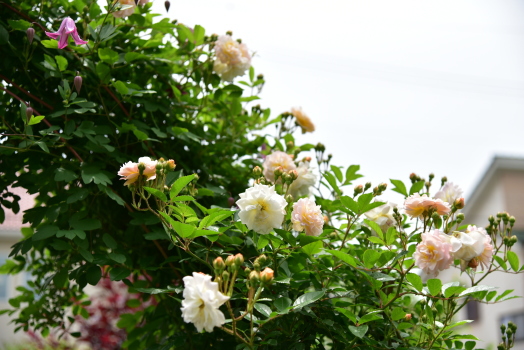 バラたちは早くに咲き始めたものはピークを過ぎ少しづつ花数を減らしていきます