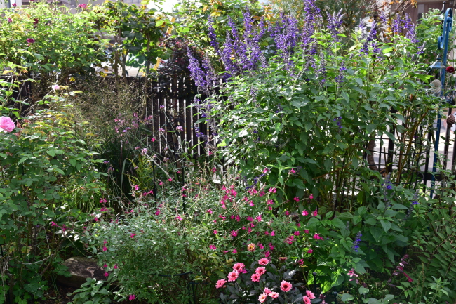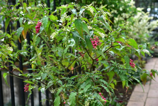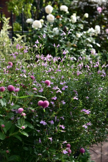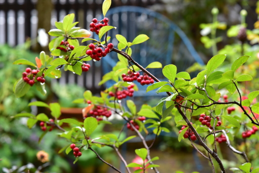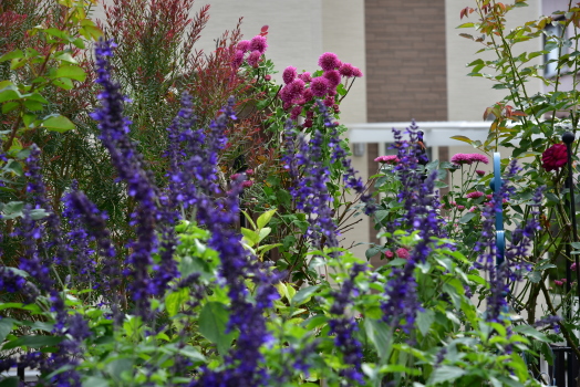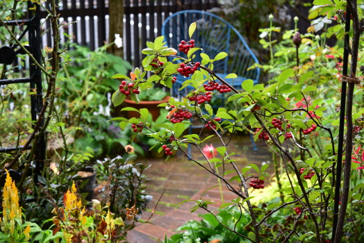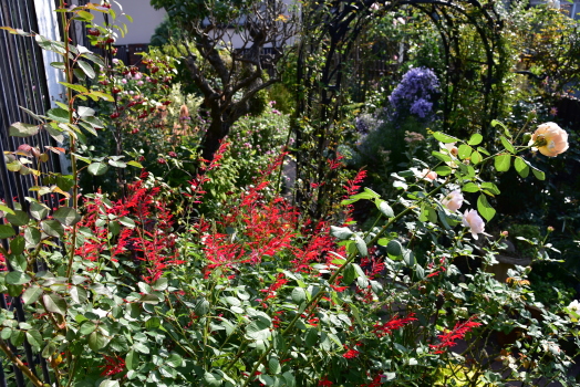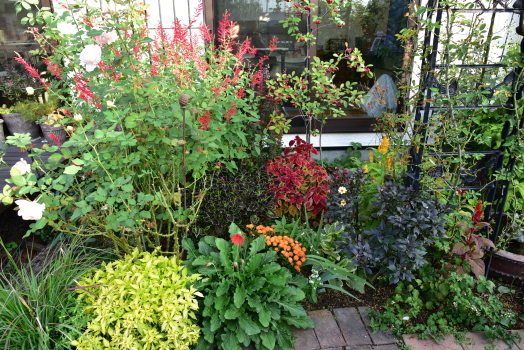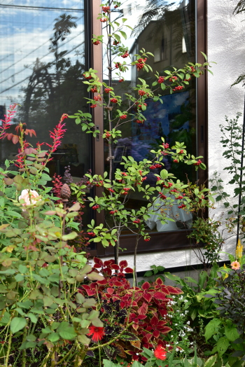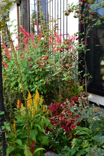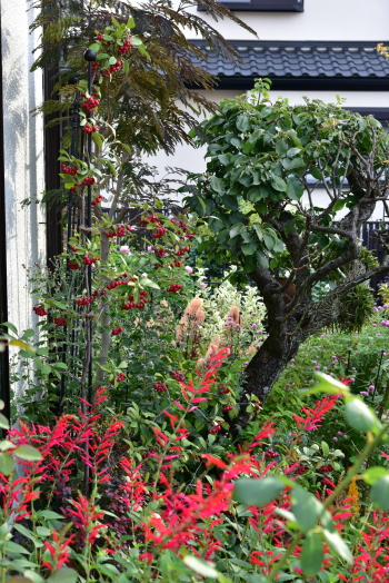 この場所は秋のカマツカの実に合わせてパイナップルセージを植えた